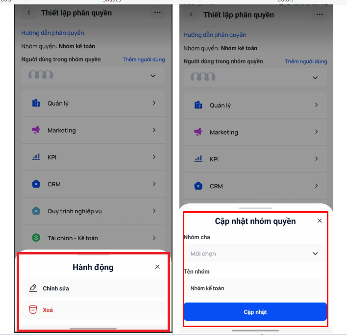 3. Chỉnh sửa hoặc xóa nhóm quyền