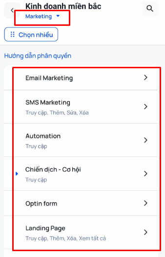 Bạn được phép truy cập module/chức năng. Khi chọn quyền này, module/chức năng sẽ hiển thị trên giao diện.
