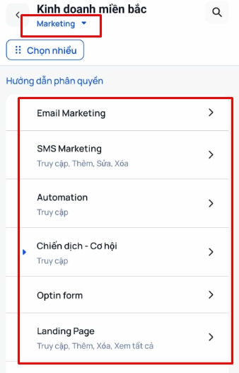 Marketing: Email Marketing, SMS Marketing, Automation, Chiến dịch – Cơ hội (OptinForm, LandingPage).