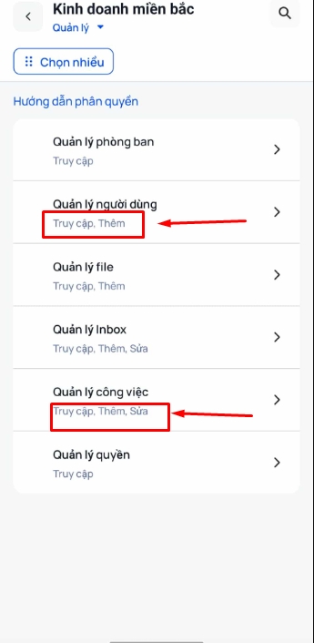Bạn nhấn vào tên chức năng để tiến hành phân quyền.