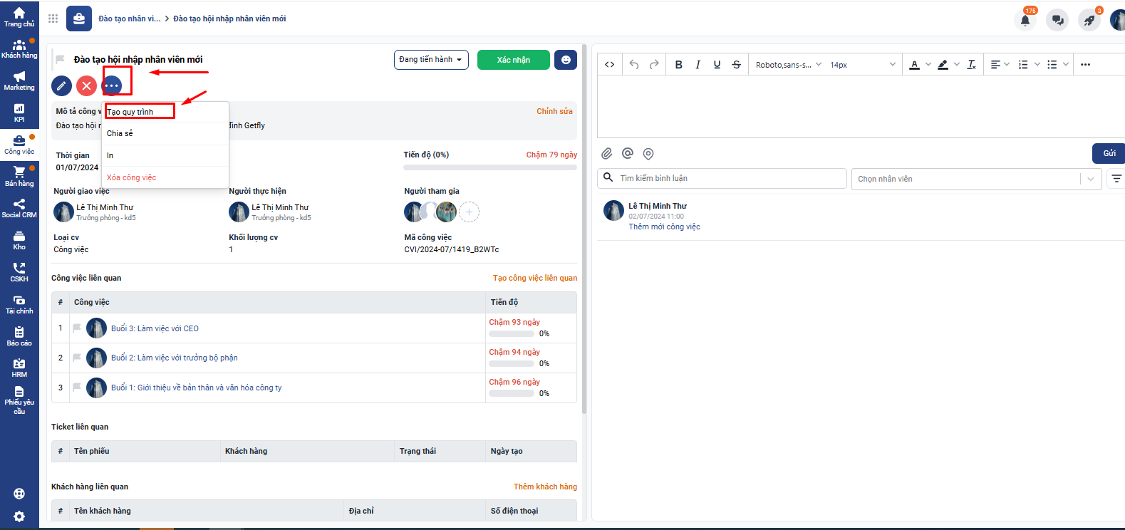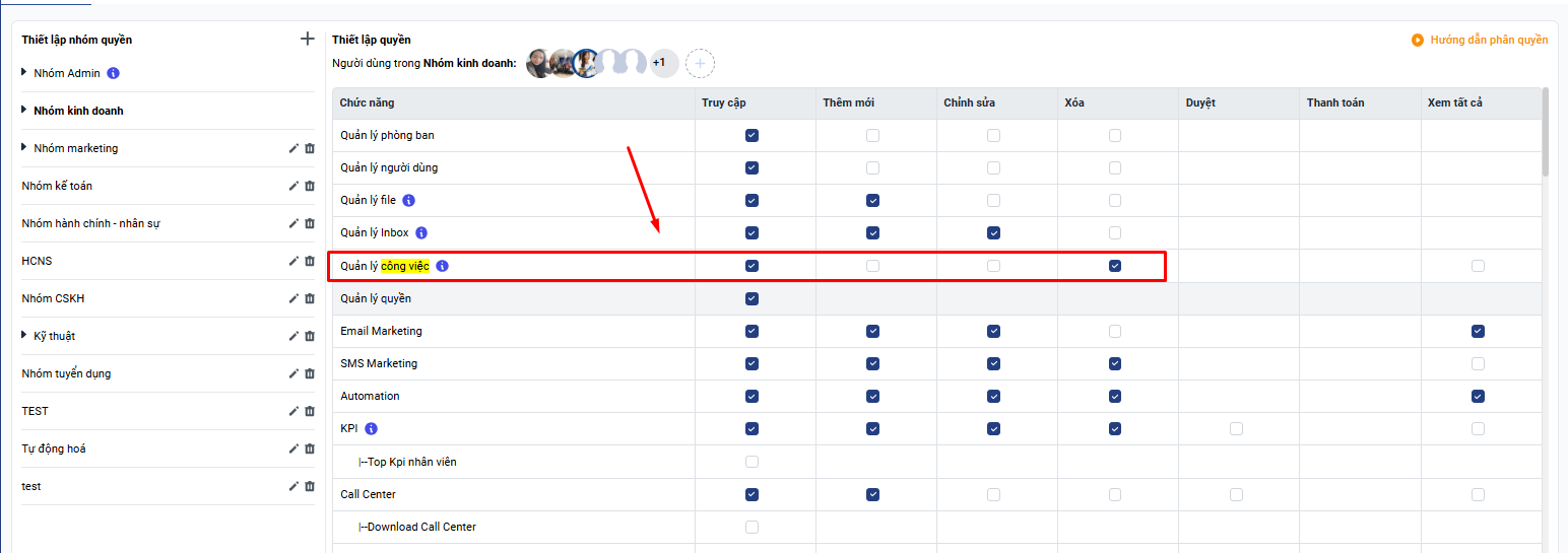 Câu 5. Ai là người có quyền xóa công việc trên Getfly?
