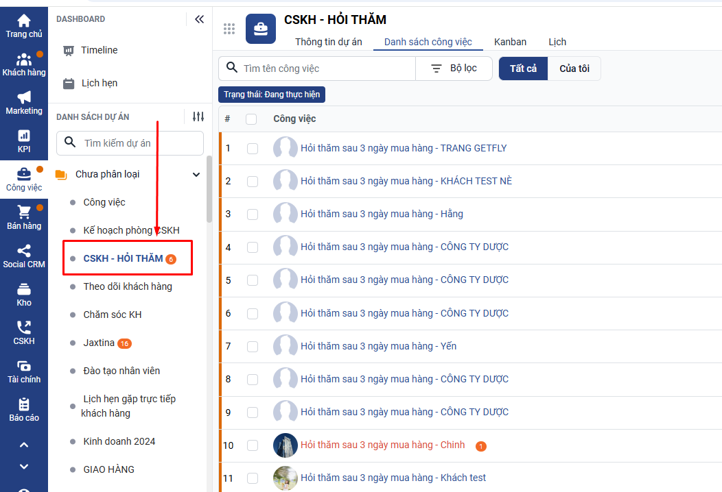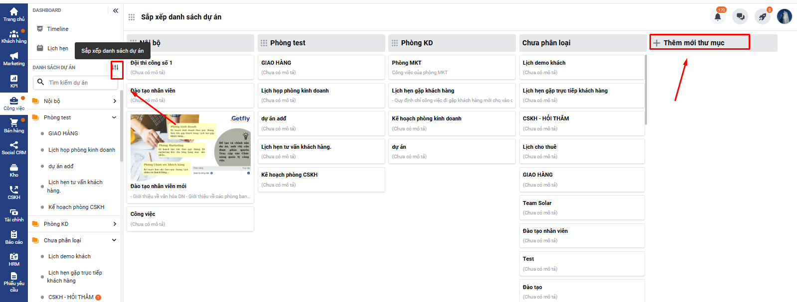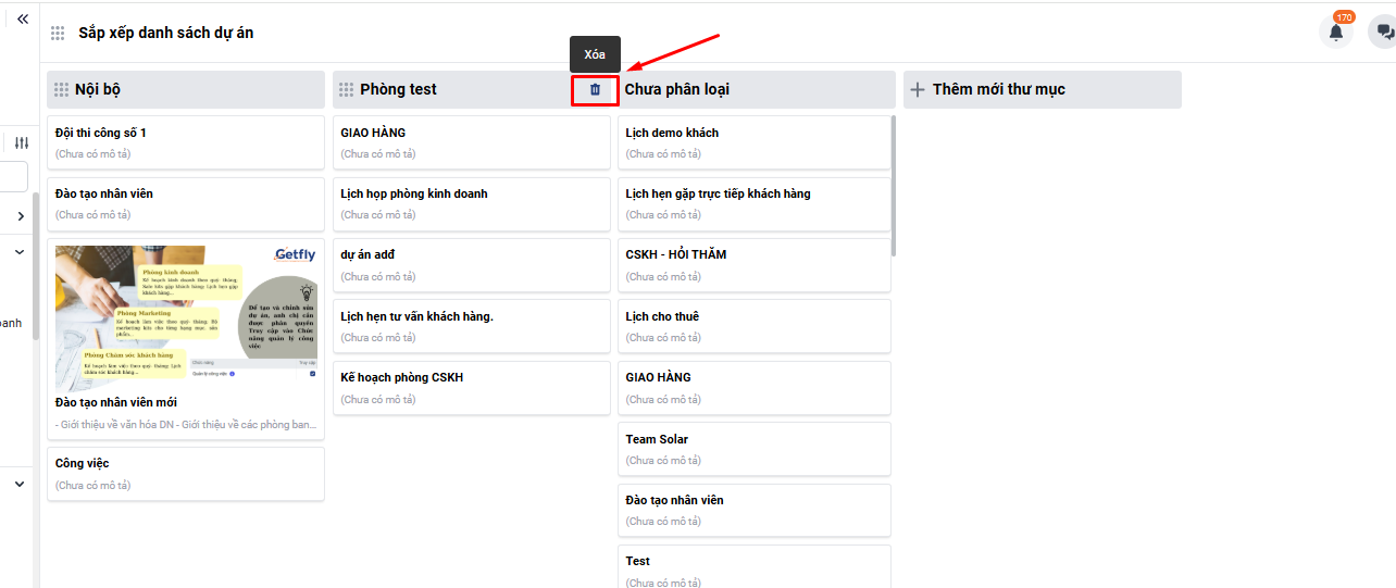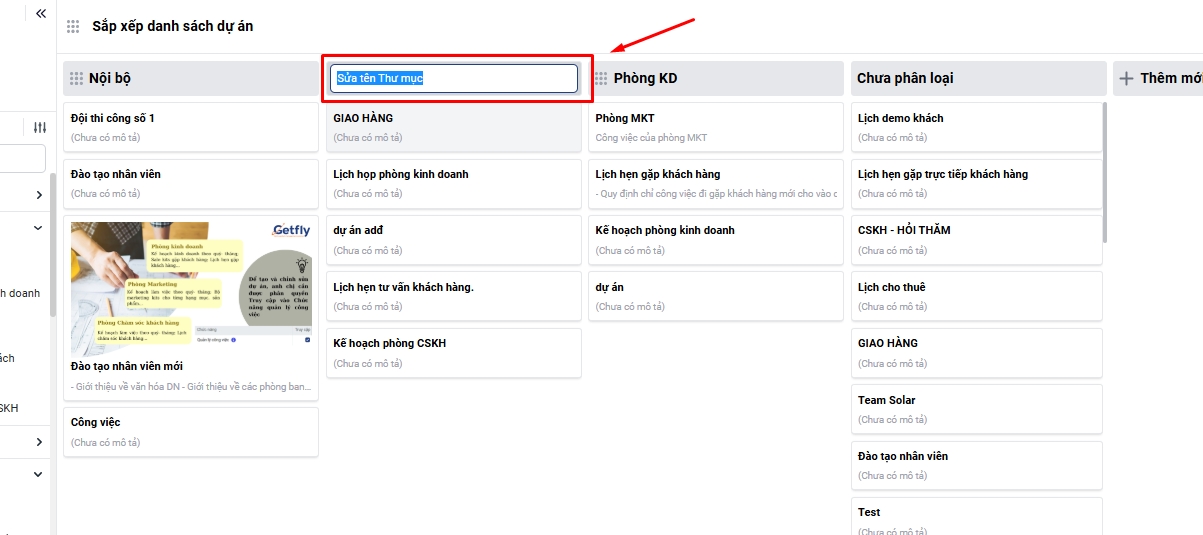 Câu 10. Làm sao để thêm mới, sửa, xóa tên thư mục công việc khi sắp xếp dự án trên Getfly?