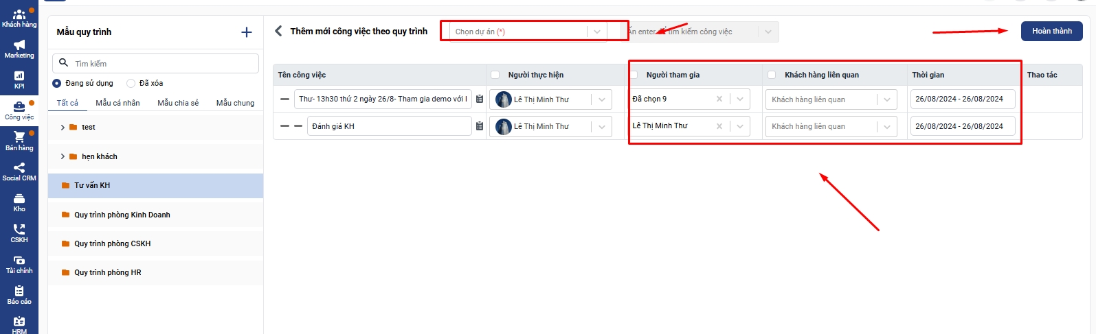 Hệ thống sẽ tự động tạo các công việc tương ứng theo quy trình