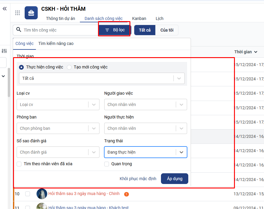 Câu 6. Logic sắp xếp công việc trên Getfly là gì?