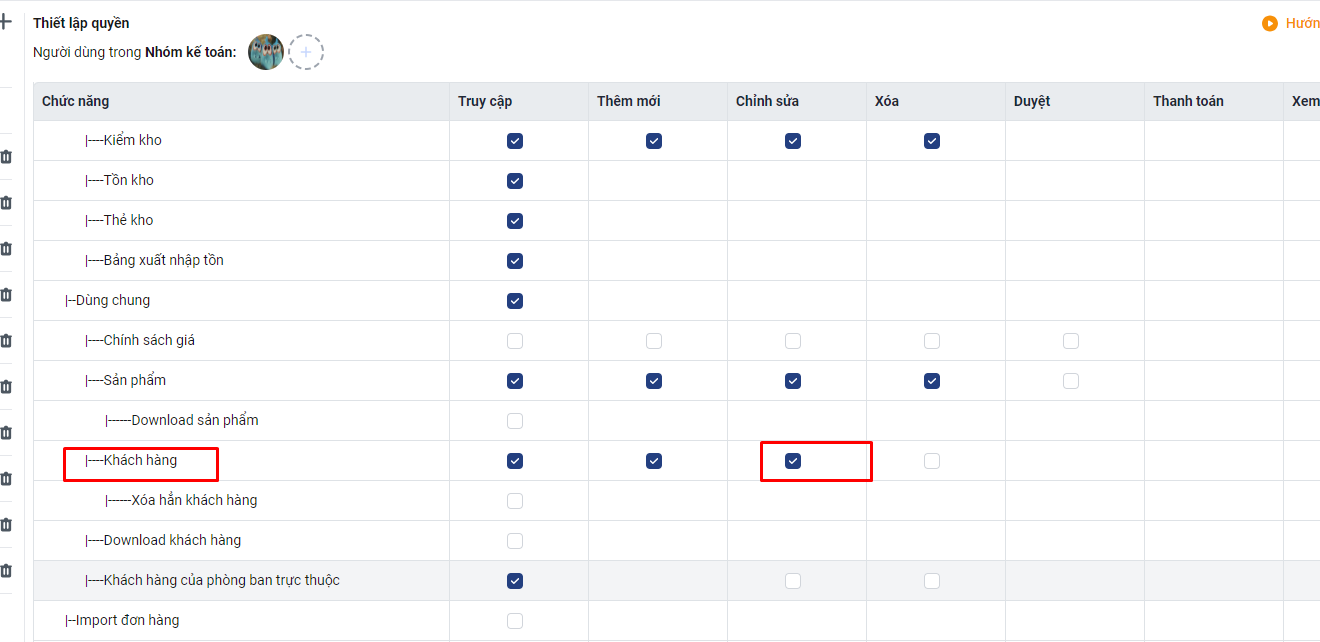 - Để thay đổi thứ tự các cột trong giao diện quản lý danh sách khách hàng bạn cần được phân quyền quản lí quyền trên hệ thống: