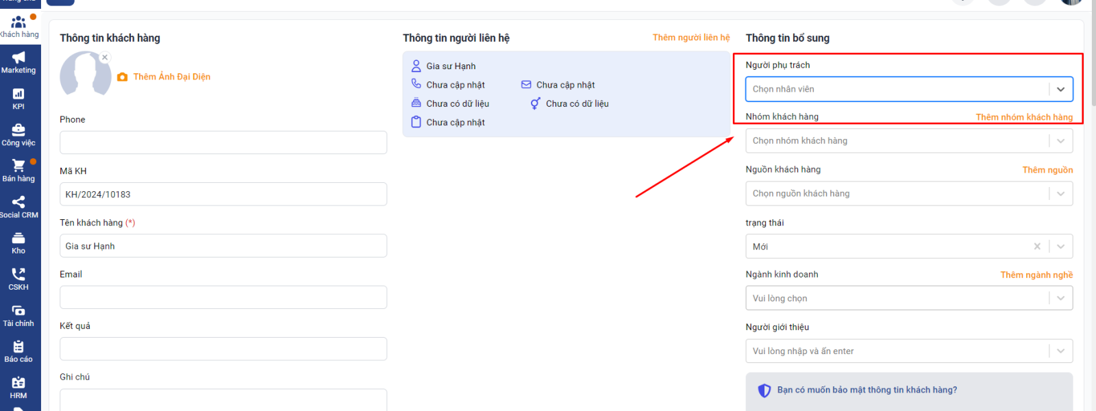 Câu 3. Làm sao để thêm một trường dữ liệu mới vào phần thông tin người liên hệ ở khách hàng?