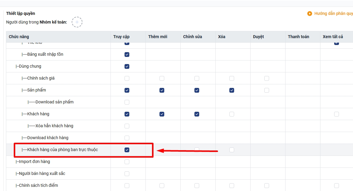 Nếu bạn muốn nhân viên trong cùng một team/phòng ban xem được dữ liệu của nhau, hãy phân quyền cho các tài khoản với quyền Xem khách hàng theo phòng ban trực thuộc