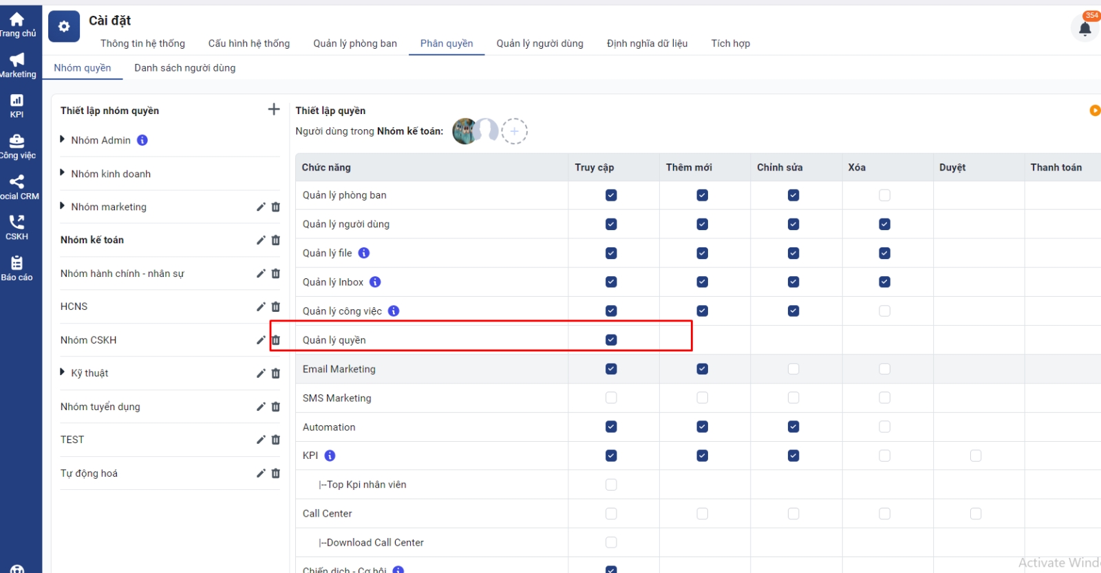 - Để cài đặt được số thập phân tại phần đơn vị tính và tiền tệ bạn cần có quyền : Quản lí quyền trên hệ thống.