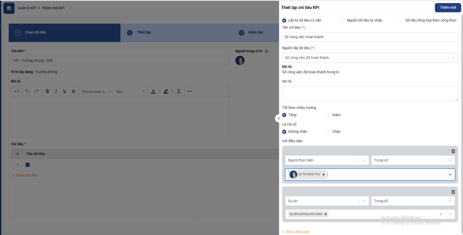 Bước 2: Thiết lập chỉ tiêu kpi cho nhân viên kinh doanh 2
