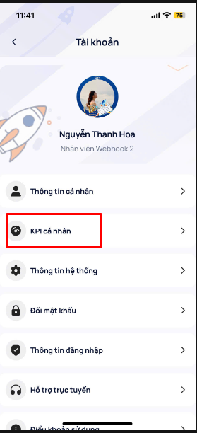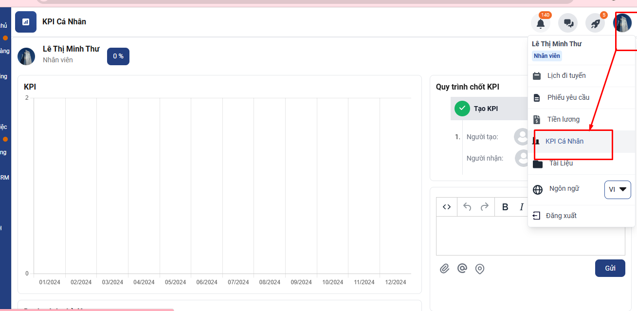 Bạn nhấp vào phần Avata Cá nhân (góc trên cùng bên tay phải) ⇒ chọn KPI cá nhân