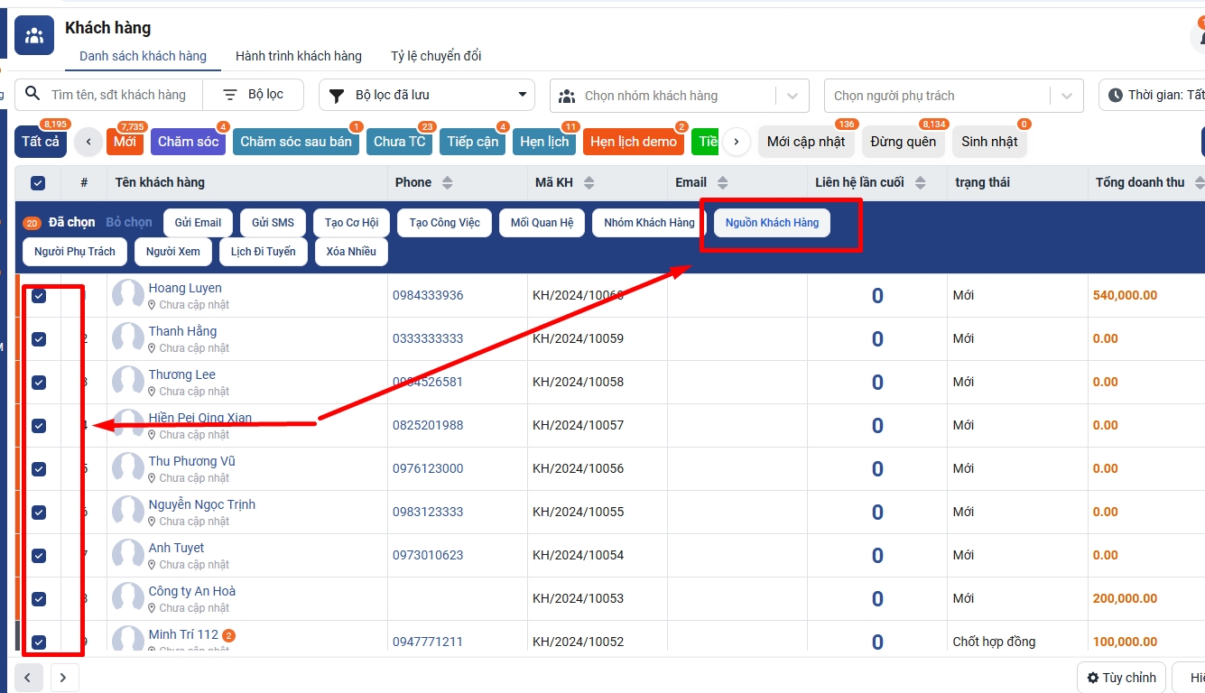 (Bạn có thể chọn hiển thị nhiều hơn để tích chọn nhiều khách hàng cùng lúc).