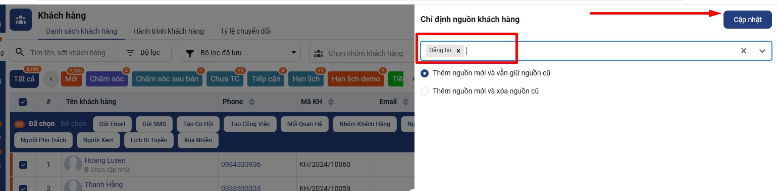 Chọn Nguồn khách hàng → Chọn nguồn khách hàng mới.