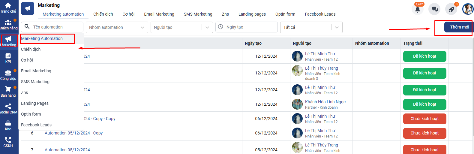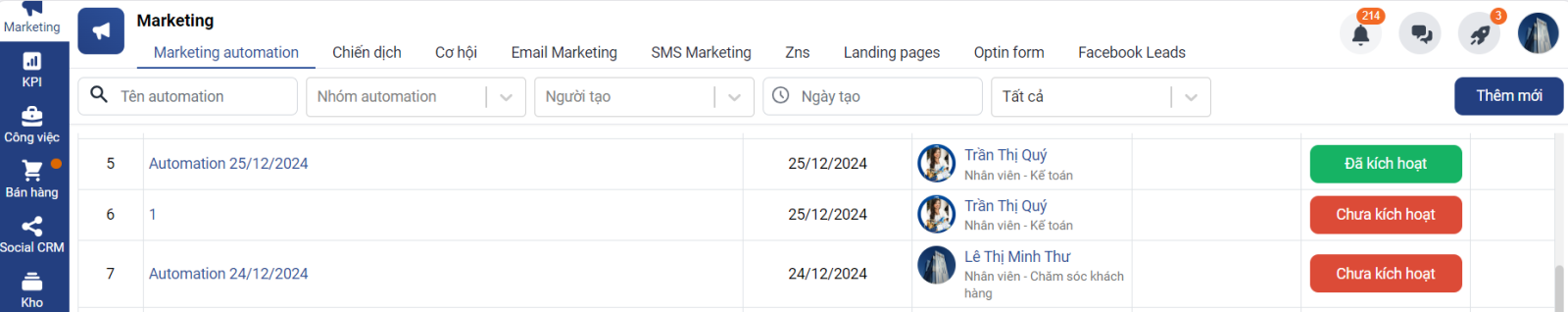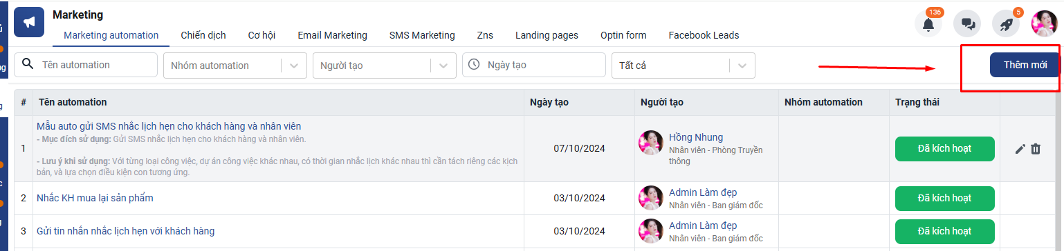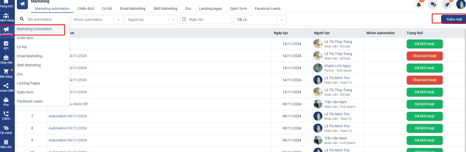 Bước 1. Vào Marketing Automation => chọn Thêm mới