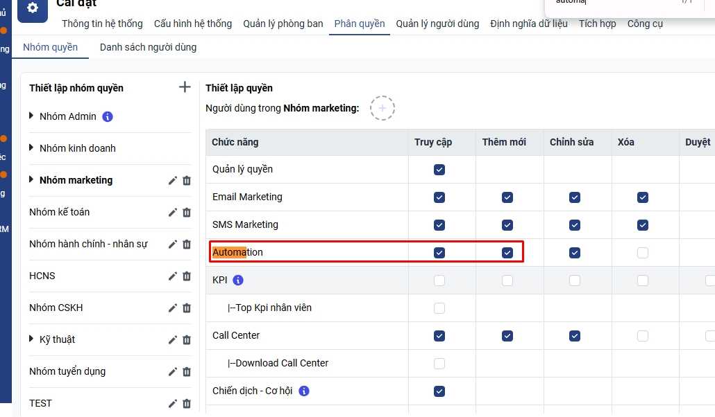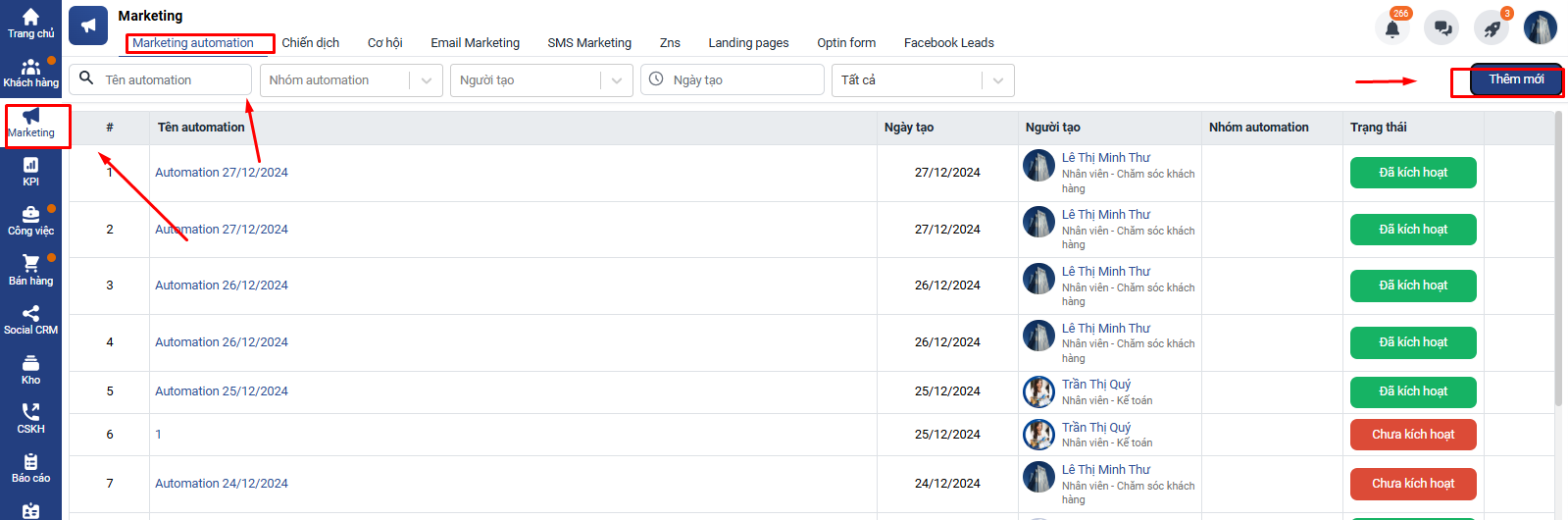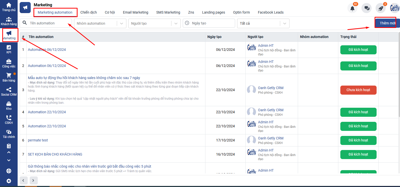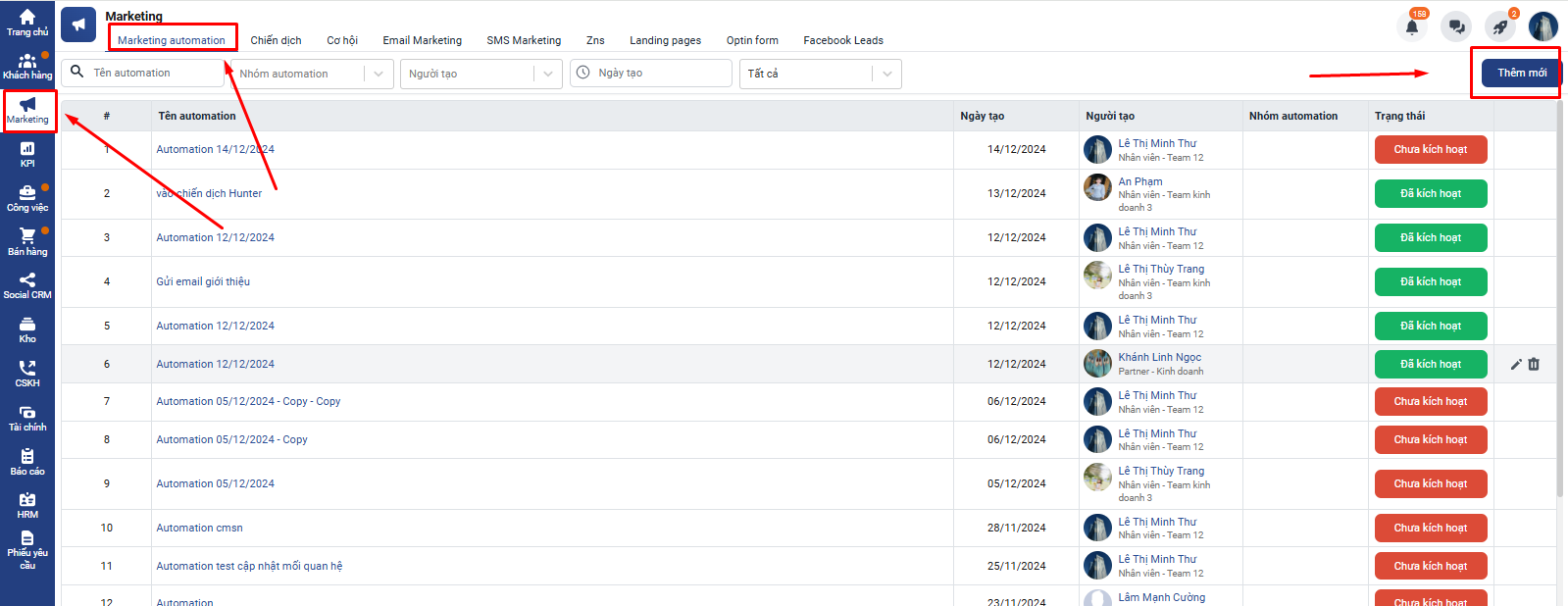 Bước 1. Vào Marketing Automation => chọn Thêm mới