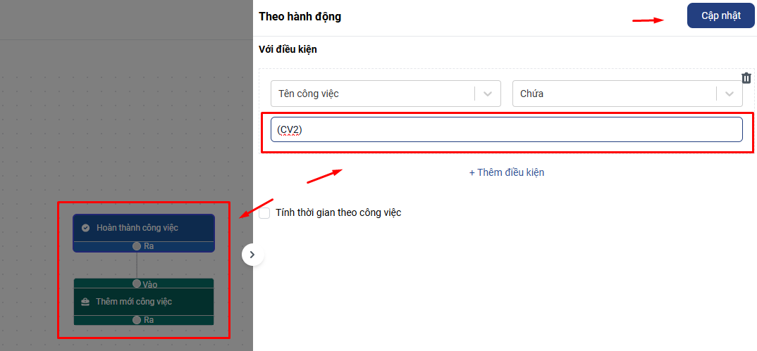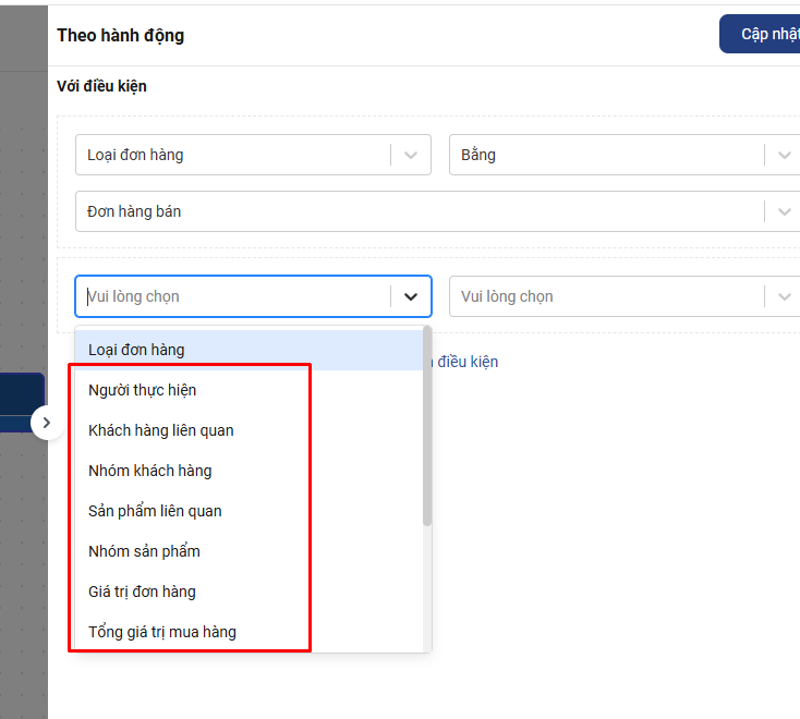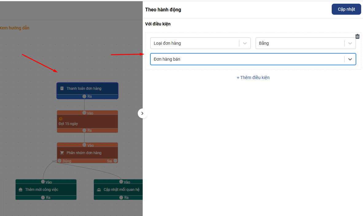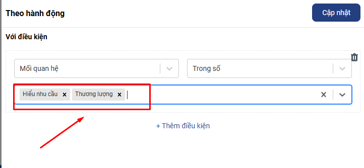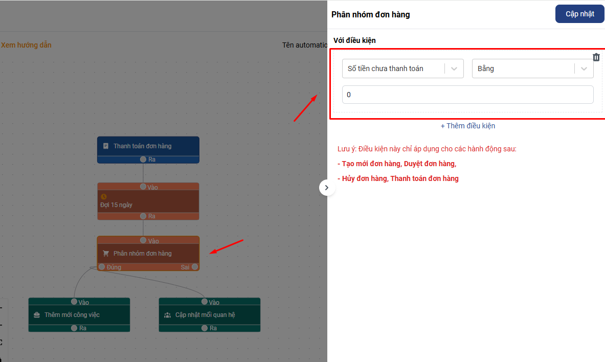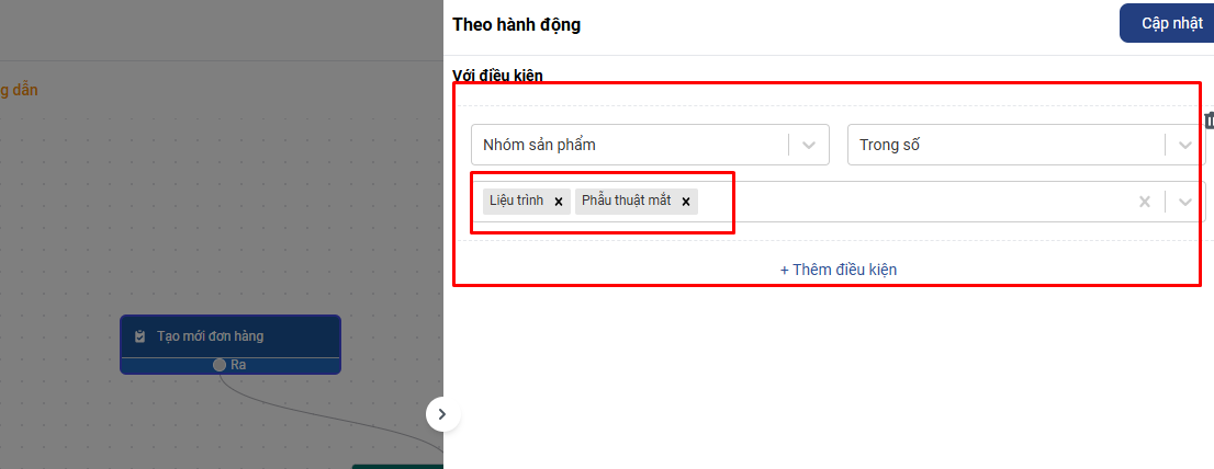 Sau khi thêm xong điều kiện bạn nhấn Cập nhật để lưu cài đặt