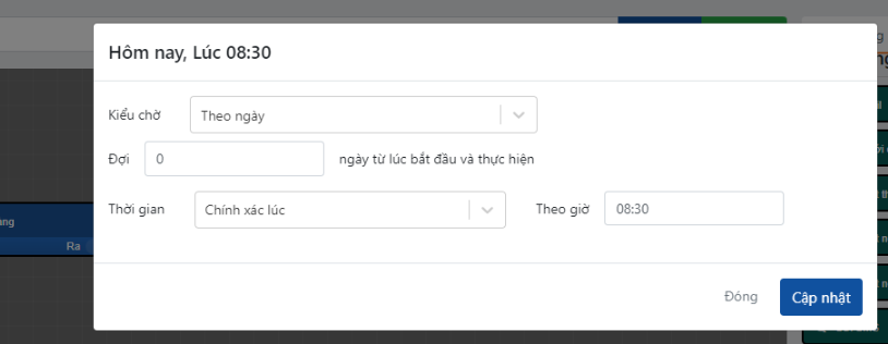 Điều chỉnh thời gian giữa các bước: Điều này giúp đảm bảo rằng các bước trong quy trình tự động hóa diễn ra đúng thứ tự và có khoảng thời gian cần thiết giữa các bước. Điều này đặc biệt hữu ích khi bạn muốn tránh việc gửi quá nhiều thông điệp/ hành động trong một thời gian ngắn hoặc cần thời gian để thu thập dữ liệu phản hồi từ khách hàng.