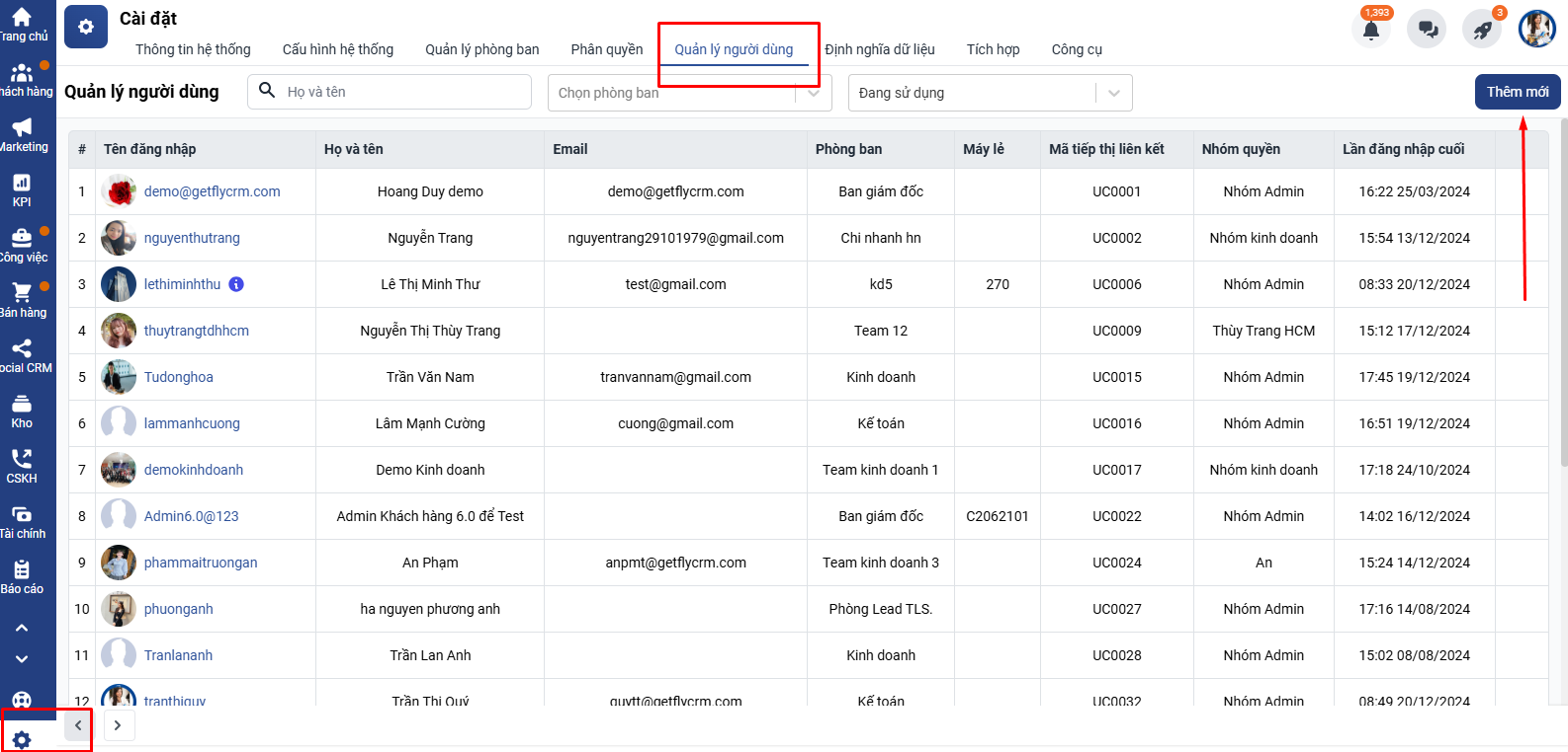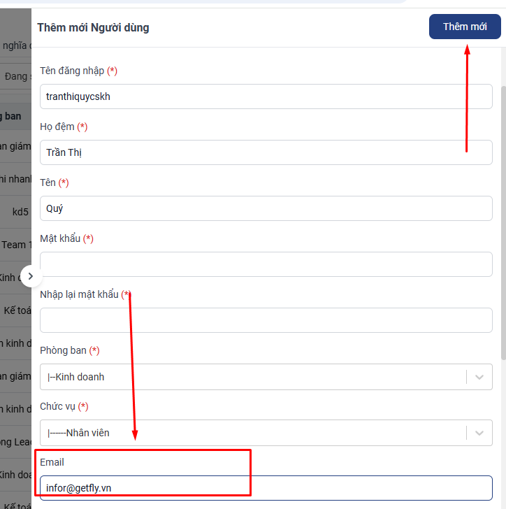 Truy cập: Cài đặt → Quản lý người dùng → Thêm mới.