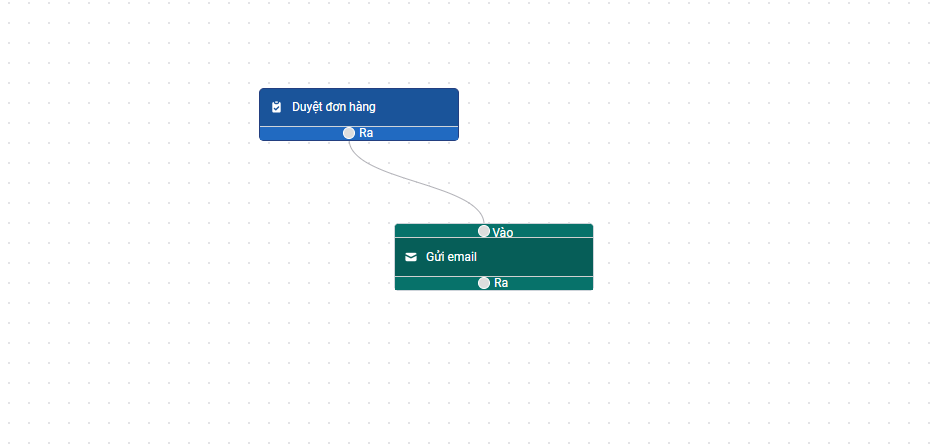 Tiếp theo để liên kết giữa hành động và hệ quả bạn kéo đường nối ỏ mục Ra của khối hành động Duyệt đơn hàng ( màu xanh dương) sang các khối hệ quả ( màu xanh lá cây)