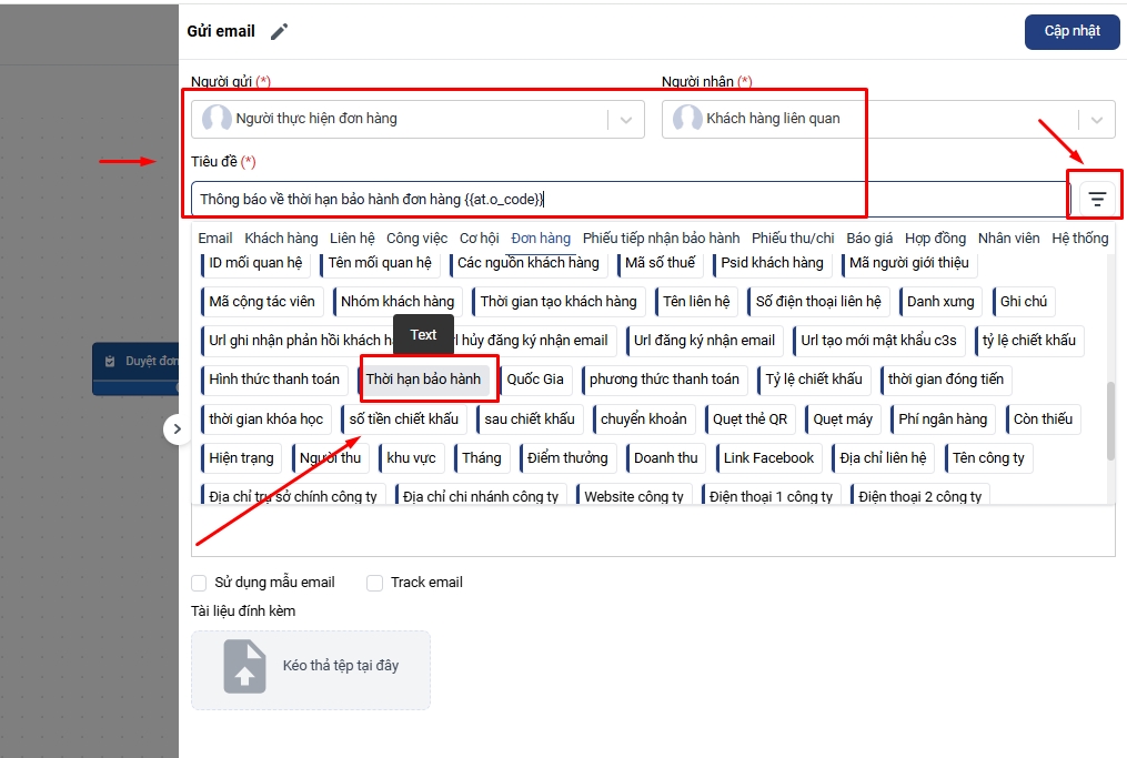 Để thiết lập automation gửi thông tin tới khách hàng về thời hạn bảo hành, bạn có thao tác theo phương án sau: