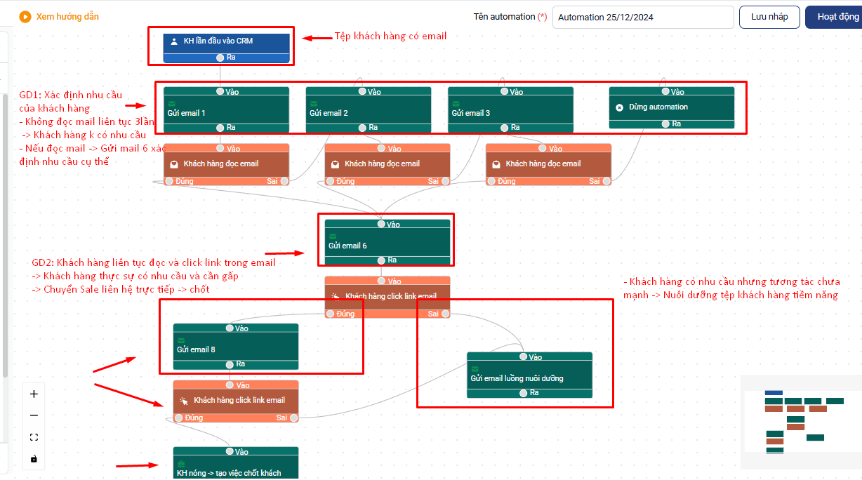Ví dụ: Luồng email tiếp cận và nuôi dưỡng nhu cầu của khách hàng