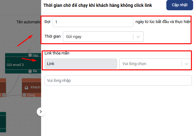 Giữa mỗi hệ quả bổ sung điều kiện check khách hàng Đọc email/ Khách hàng click link trong email