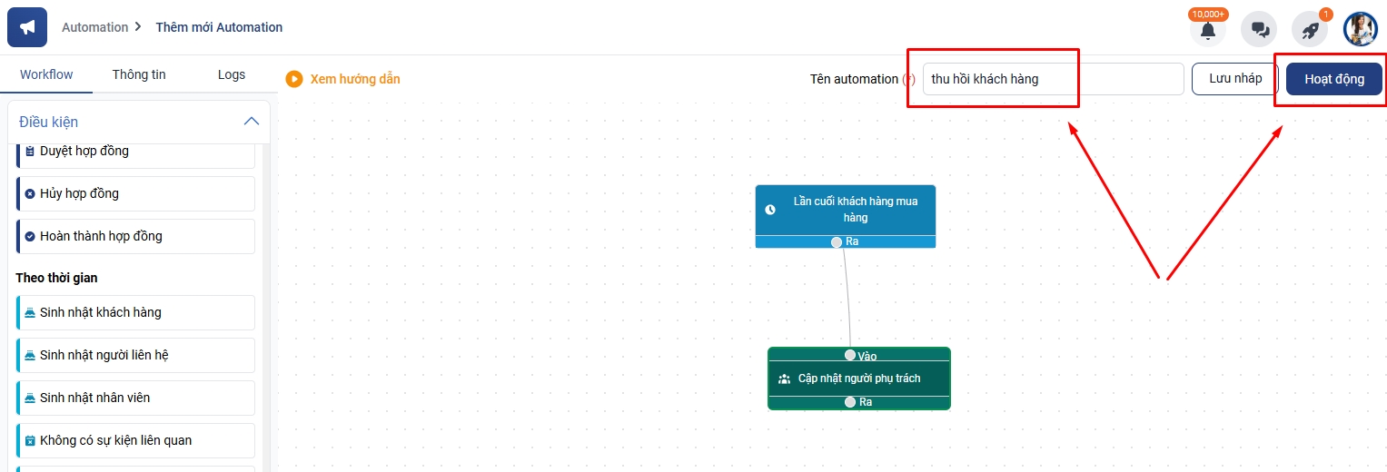 Bước 4. Hoàn tất bạn sẽ có 1 kịch bản hoàn chỉnh. Lưu tên và chọn Hoạt động để bắt đầu auto