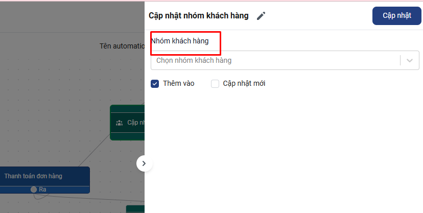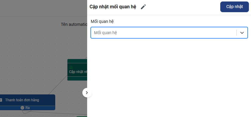 Bước 3. Chọn điều kiện Thanh toán đơn hàng và Thao tác Cập nhật Mối quan hệ và Cập nhật Nhóm khách hàng