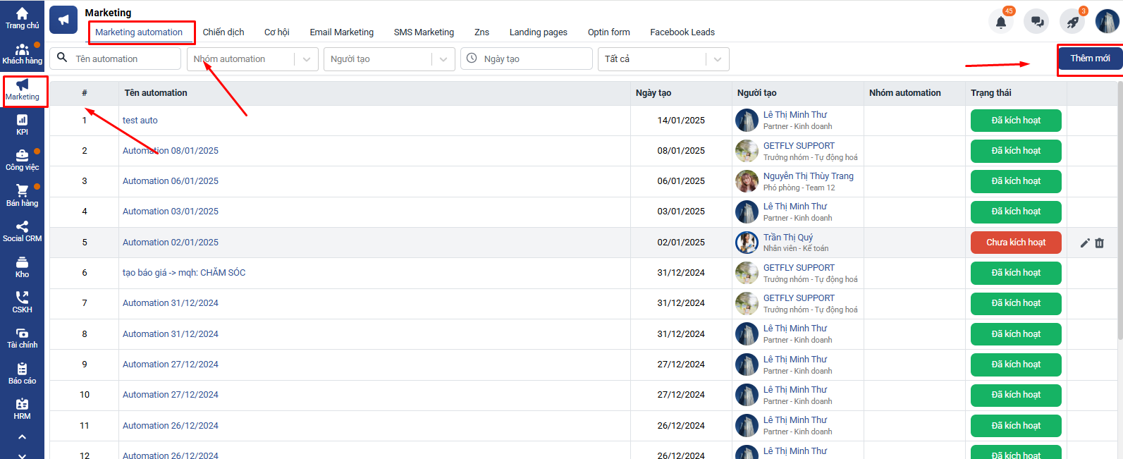 Bước 1: Bạn vào Marketing → Marketing automation → Thêm mới