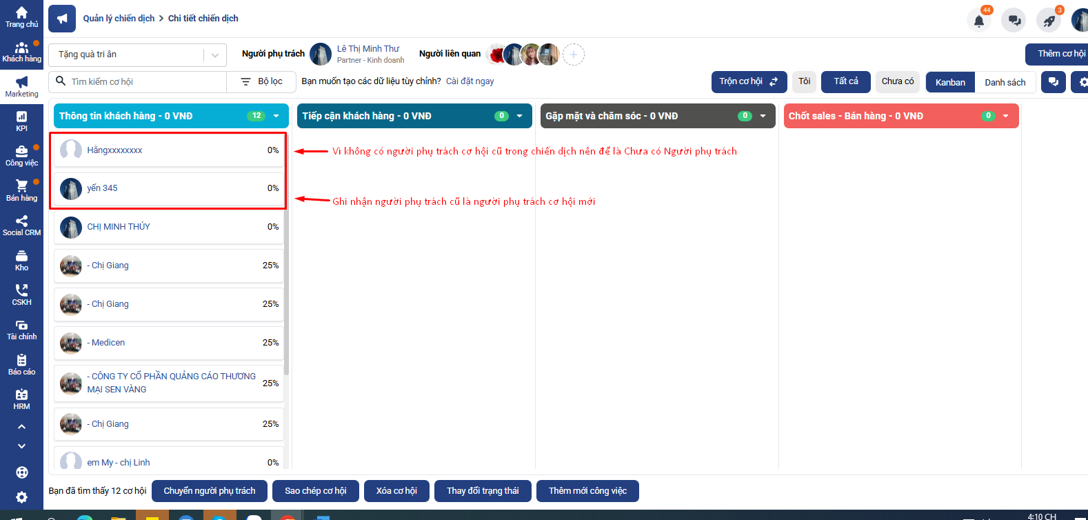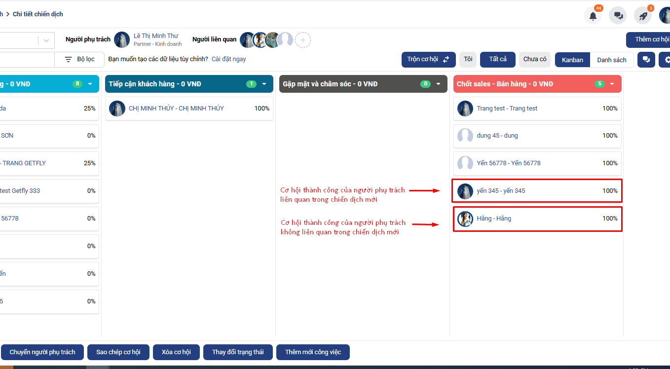 Trường hợp người phụ trách cơ hội liên quan cả ở 2 chiến dịch cũ và mới: Cơ hội mới sinh ra sẽ do bạn phụ trách ở chiến dịch cũ là người phụ trách cơ hội luôn.