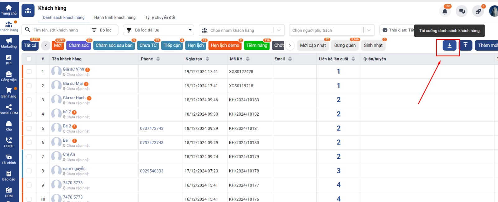 Bước 2: Tải xuống các khách hàng trong bộ lọc này