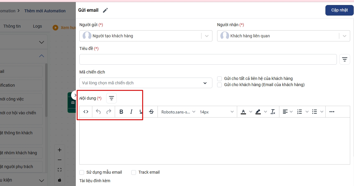 Bước 3. Tạo automation gửi email cho tất cả khách hàng trên hệ thống trừ nhóm khách hàng “KH không gửi email”