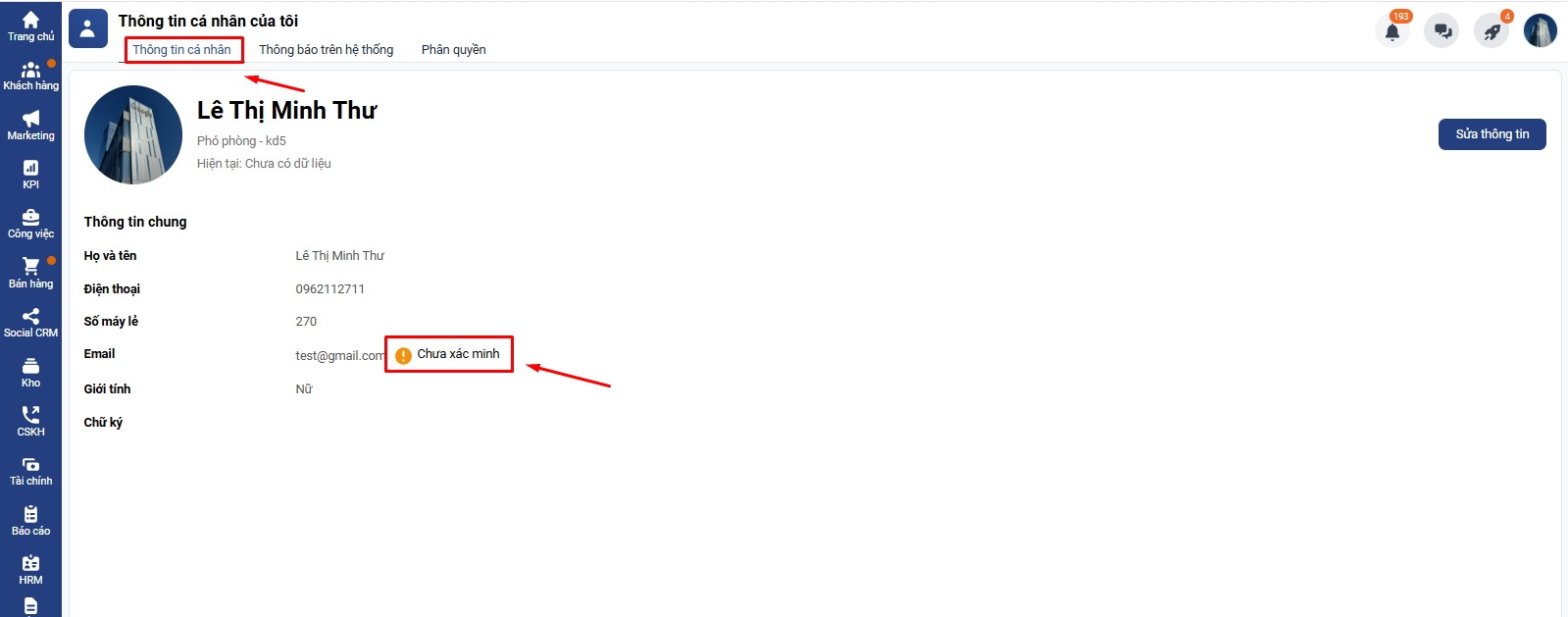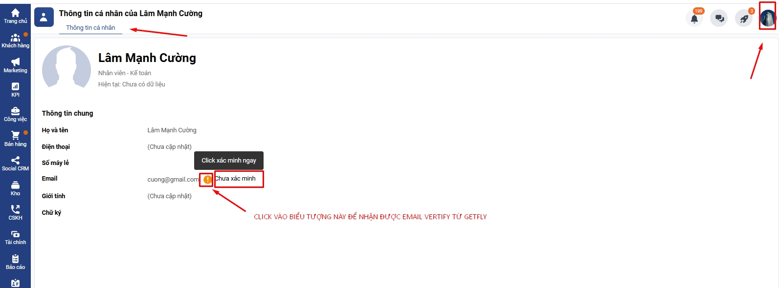 1. Tài khoản email cá nhân của bạn chưa được xác minh trên hệ thống Getfly