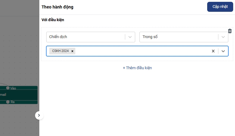 Sau khi thiết lập xong automation, bạn đẩy các khách hàng thuộc nhóm Đã gửi email vào chiến dịch CSKH: Để chạy gửi mail theo automation đã tạo trước đó.