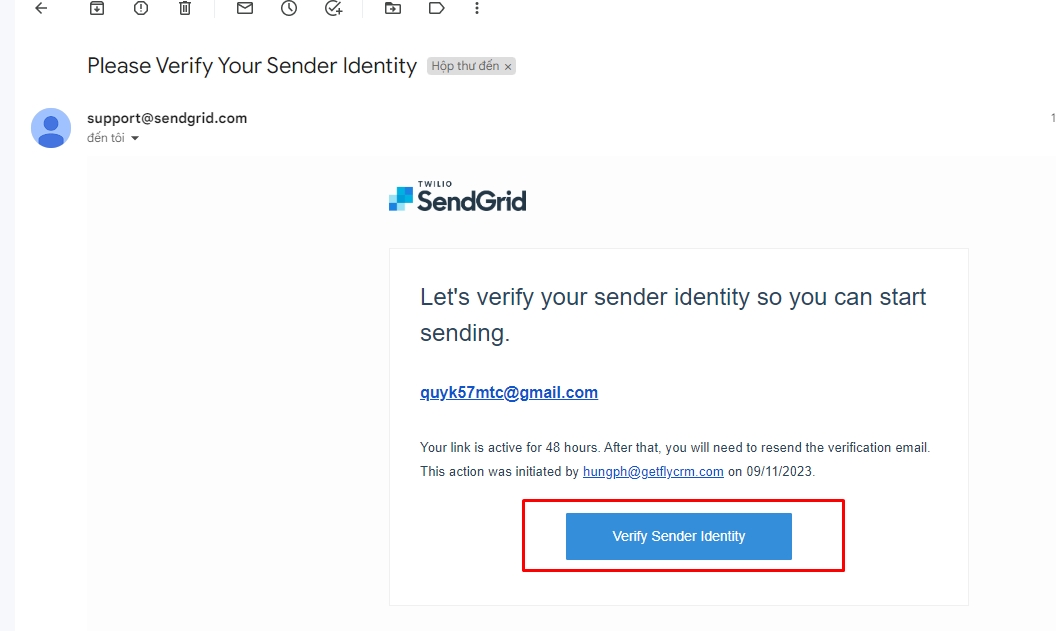 2. Email cá nhân của bạn chưa được vertify trên tài khoản gửi mail được tích hợp vào Getfly