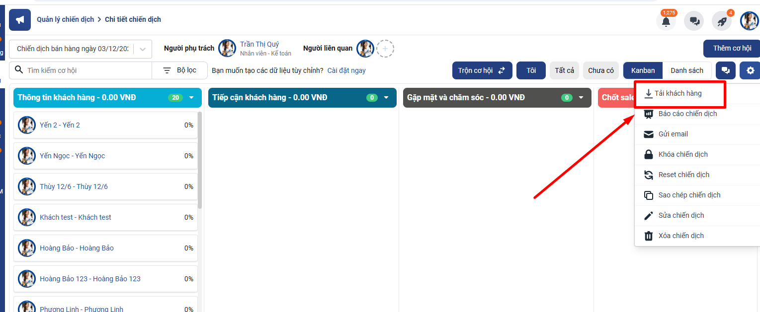 Cách 2. Tải danh sách cơ hội về file Excel