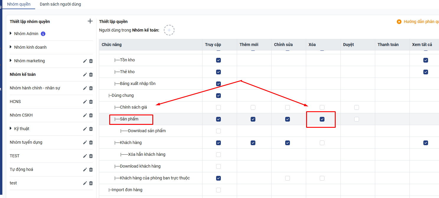 Lưu ý: Để có thể thao tác xoá sản phẩm, tài khoản Getfly của bạn cần có quyền xoá được xoá sản phẩm.