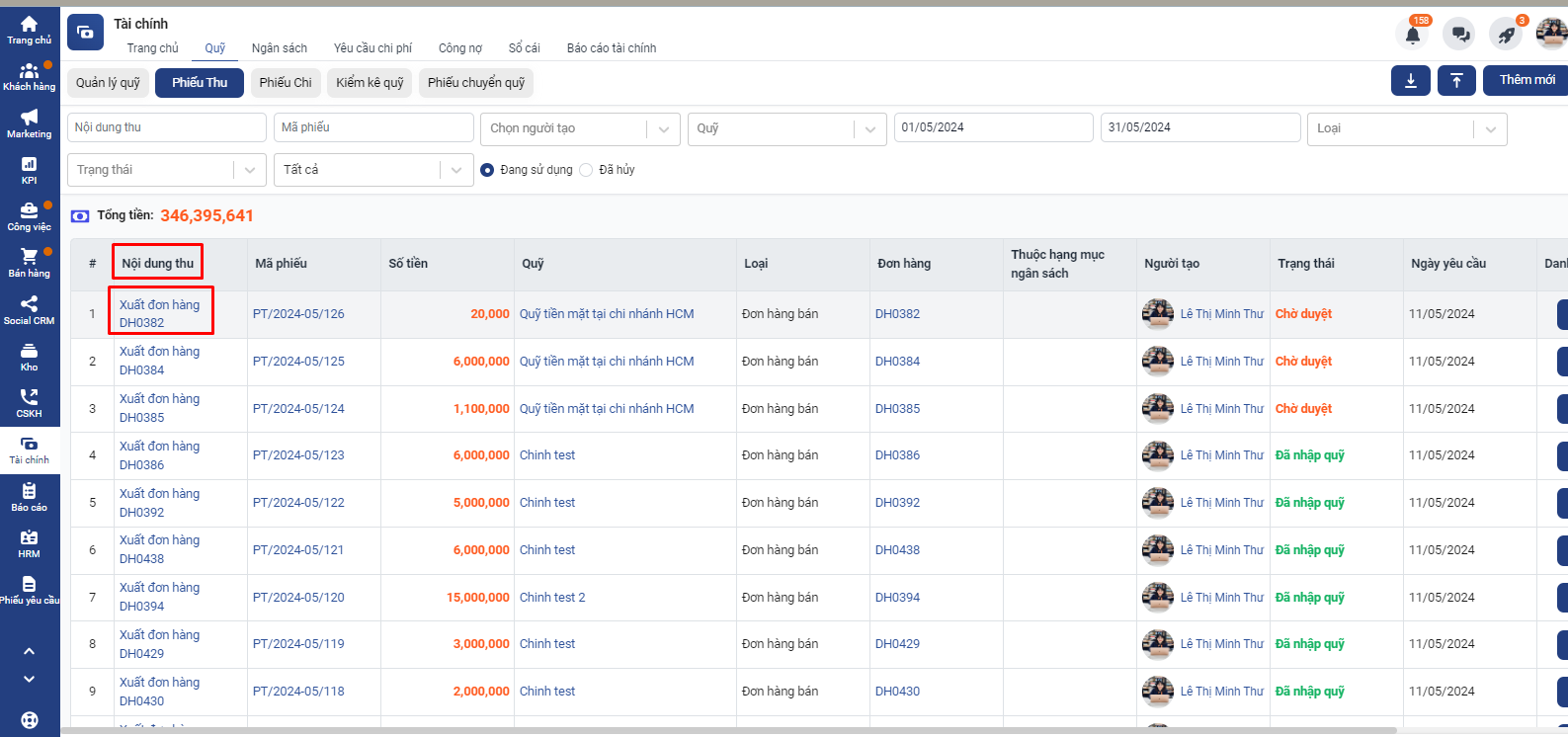 Hiện tại, sau khi phiếu thu/chi được tạo trên hệ thống Getfly.