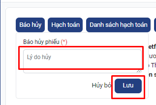Khi click BÁO HUỶ thì cần nêu lý do huỷ