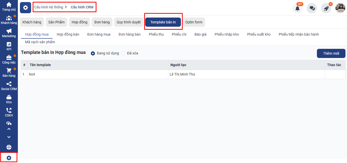 Bước 4: Sau khi điền tên template, bạn click vào Thêm mới để lưu mẫu in vừa tạo.