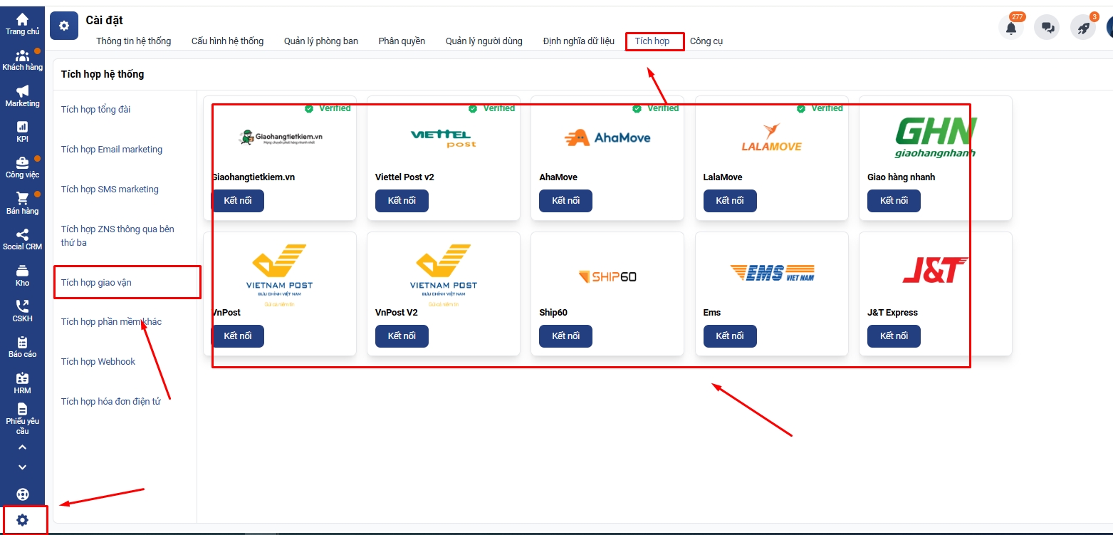 Vào Cài đặt → Tích hợp → Tích hợp giao vận.