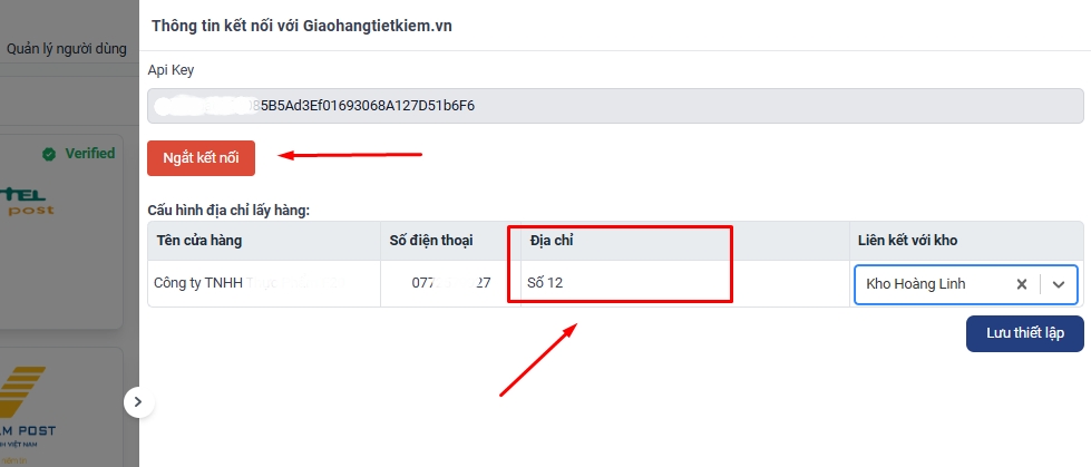 Sau khi tích hợp đơn vị vận chuyển vào Getfly, thông tin địa chỉ lấy hàng có thể thay đổi (ví dụ: bạn thêm kho mới, thay đổi địa chỉ kho, ...). Để Getfly cập nhật thông tin mới nhất từ tài khoản vận chuyển, bạn cần thực hiện kết nối lại đối tác vận chuyển.