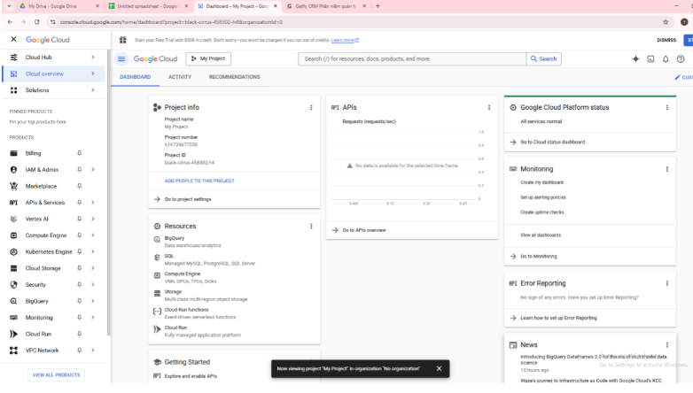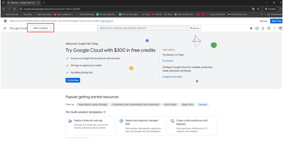Truy cập vào: https://console.cloud.google.com để thực hiện tạo 1 project