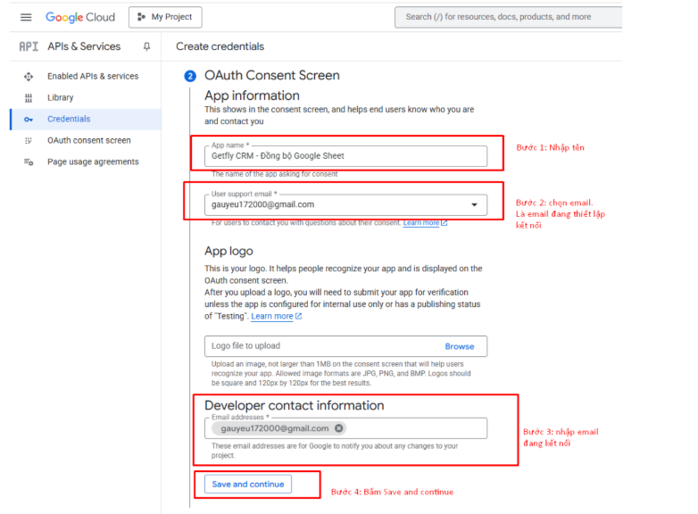 Nhập các thông tin ở mục 2- OAuth consent Screen