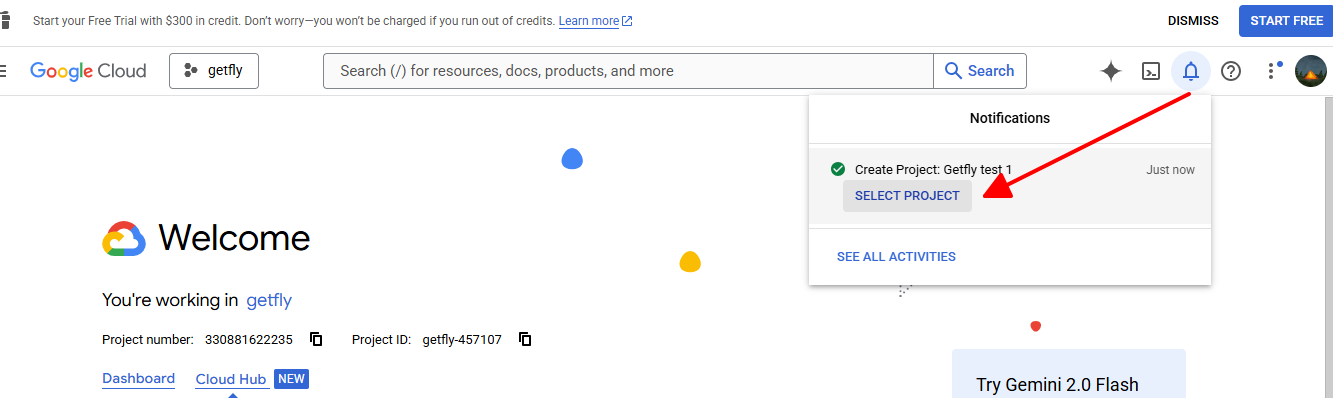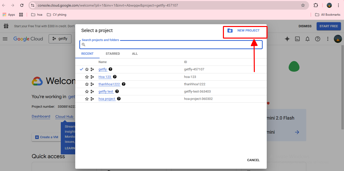 - Sau đó người dùng bấm vào biểu tượng quả chuông thông báo và chọn “Select Project” như hình ảnh