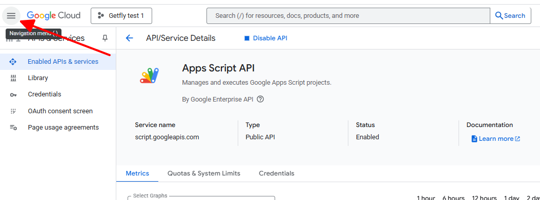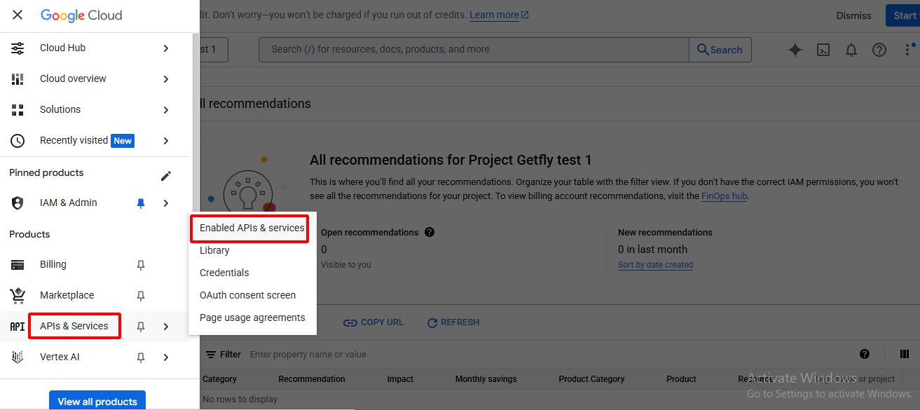Thực hiện bấm chọn APIs & Services > Enabled APIs & Services