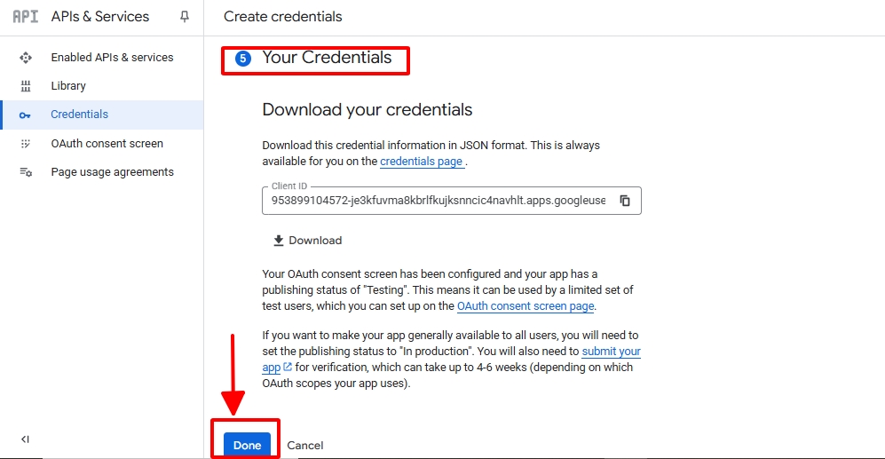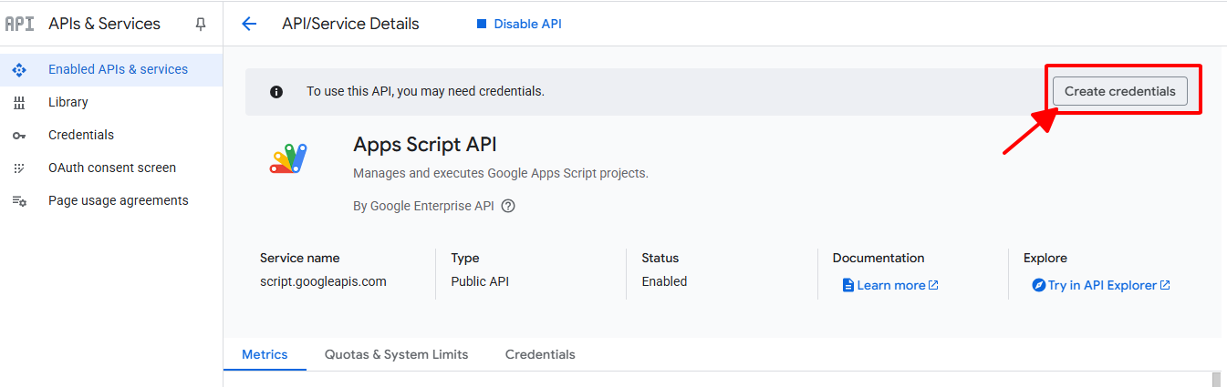 Sau khi Enable xong, tiếp tục bấm vào “Create credentials” như hình ảnh