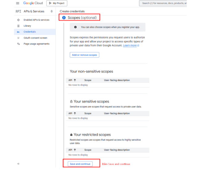 Nhập các thông tin ở mục 3- Scopes (optional)