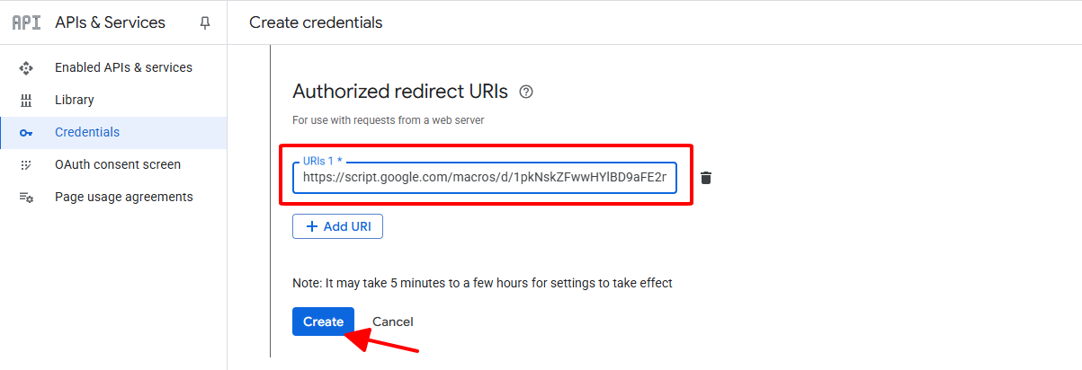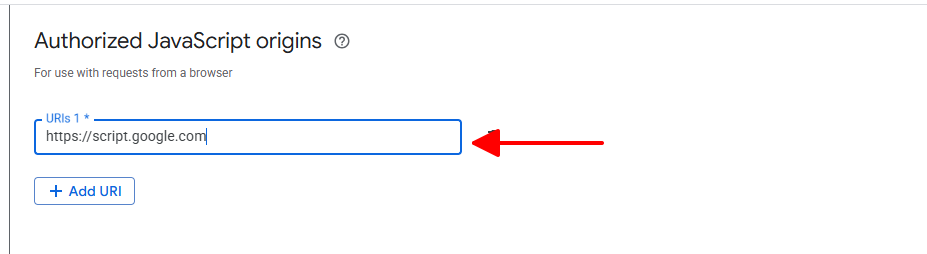 Bấm nút “+ Add URI” ở trường “Authorized JavaScript origins” và nhập vào là https://script.google.com