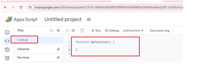 Sau khi bấm Apps Script. Hiển thị màn như ảnh dưới. Đồng thời thực hiện COPY đoạn mã sau chữ “projects/” và trước “/edit” như ảnh bên dưới, kết quả được dãy ký tự ví dụ như sau: 1pkNskZFwwHYlBD9aFE2m3xRiLAnJOn5ya8QPcebZPzzv4ziQVUFowKha
