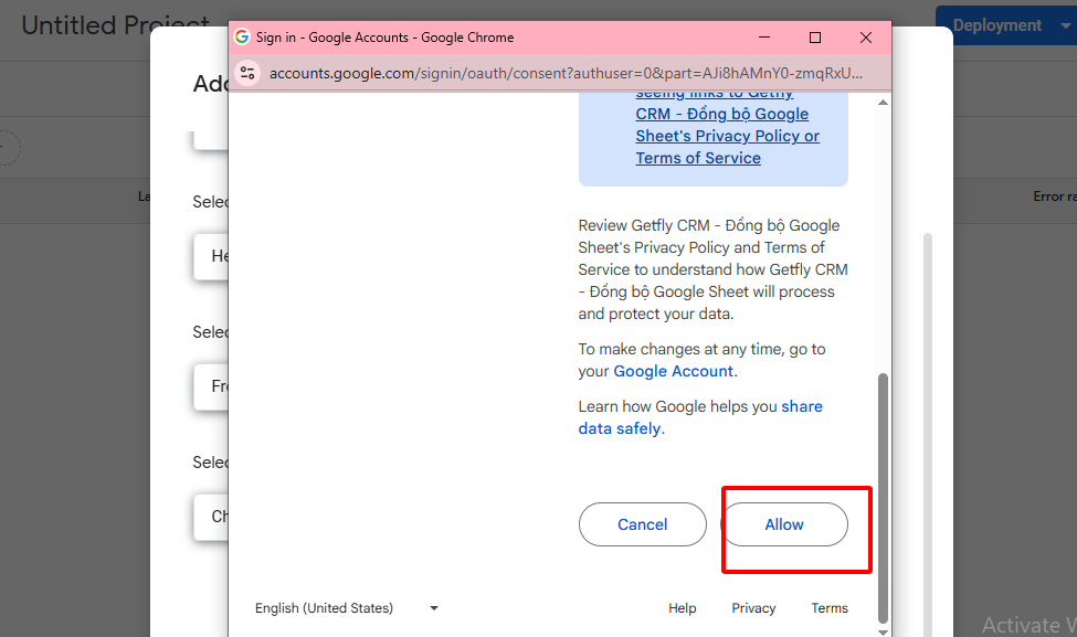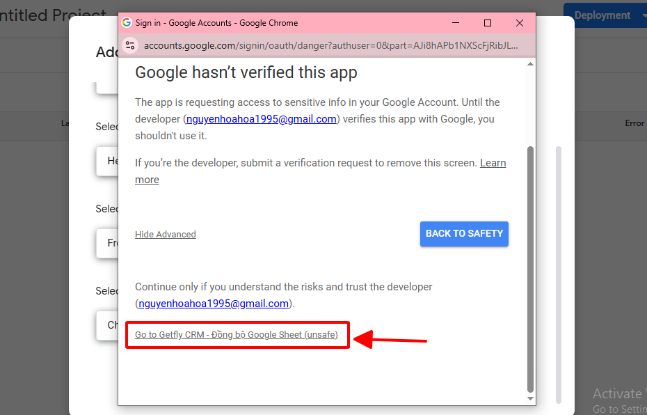 + Bấm Go to Getfly CRM - Đồng bộ Google Sheet (unsafe)